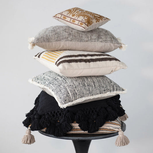 18" Cotton Slub Pillow w/ Crochet & Tassels, Polyester Fill